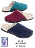 These slippers feature a micro-suede upper, faux-sheepskin lining and rubber-based sole. Polyester. Imported. Machine washable..../ Clog Slippers, Color Navy, Size SM / Small Shoes