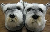 Realistic puppy slippers for the whole family. Super soft, adjustable and great looking slippers for around the house or in the yard. Available in Child and Adult Sizes. Child size: 7 in length which is suitable for kids 4-8 years old. Adult size: Designed for women's size 4-11 foot and men's 6-10 1/2 foot. Each slipper has an expandable instep which secures it to the foot. The soles of each slipper are a special construction of 5 layers consisting of: Nylon Tricot (which the foot rests on); Eva Foam; Polyurethane foam; Polyester Tricot; Stippled PVC dots on the bottom of each slipper to provide traction. Available in the following styles: Cocker Spaniel, Bichon Frise, Dalmation, Shi Tzu, Schnauzer, St. Bernard, Himalayan Cat, Teddy Bear..../ CHILD - SCHNAUZER - Cozy Slippers / Small Shoes